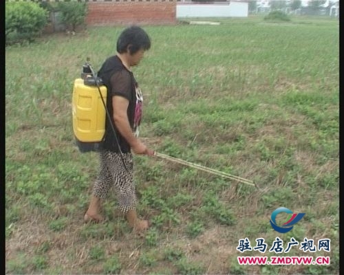 在另一處農(nóng)田里,村民程金枝正忙著給地里的花生打除草劑,確?;ㄉ酿B(yǎng)分充足。