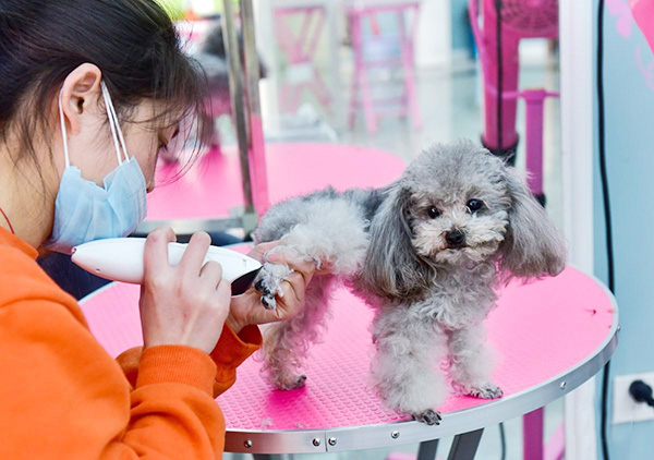 成都一家寵物寄養(yǎng)酒店,工作人員在為寵物美容。1月31日,記者來到成都溫江某寵物寄養(yǎng)酒店,這里的近百個“房間”已全部訂滿。這家寵物酒店使用面積近4000平方米,不僅有1.5平方米到6.5平方米不等的舒適房、豪華房和豪華套房,還有游泳池、訓(xùn)練場、醫(yī)院和美容院等各種服務(wù)區(qū)域。