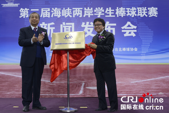 北京市大學(xué)生體育協(xié)會主席杜松彭和中華臺北棒球協(xié)會秘書長林宗成為海峽兩岸棒球交流合作委員會揭牌