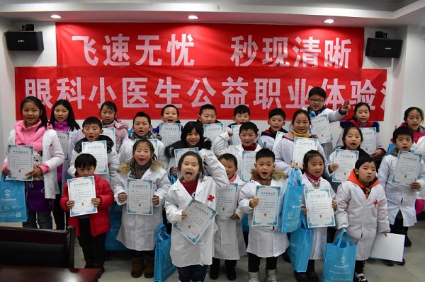 2月18日下午兩點(diǎn),“小醫(yī)生們”陸續(xù)到駐馬店眼科醫(yī)院報(bào)到,領(lǐng)取白大褂,填病歷本,查視力,孩子們第一次穿上白大褂,并在眼科醫(yī)生的帶領(lǐng)下,進(jìn)行莊嚴(yán)的宣誓。