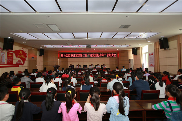 開發(fā)區(qū)黨委委員、組織部部長、區(qū)關(guān)工委副主任宋偉同志宣讀表彰決定;表彰會為獲得提名獎的好少年頒發(fā)了榮譽(yù)證書和獎品,為評選出的“開發(fā)區(qū)好少年”頒發(fā)了榮譽(yù)證書、獎杯和獎品。獲獎好少年代表作了發(fā)言。區(qū)關(guān)工委執(zhí)行主任胡清立作重要講話,并向全區(qū)少年兒童致以“六一”兒童節(jié)的親切問候。全區(qū)29所中小學(xué)校分管關(guān)工委工作的副校長、關(guān)工委主任及全區(qū)中小學(xué)校近100名學(xué)生代表參加了表彰大會。會后16名受到表彰的好少年和參加會議的領(lǐng)導(dǎo)合影留念。