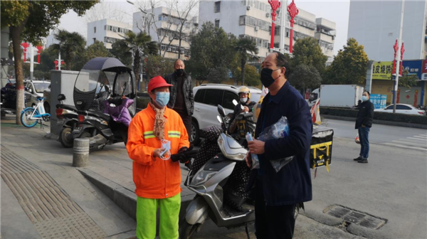 由于年齡偏大,防范意識(shí)較弱,有些環(huán)衛(wèi)工人沒(méi)有正確佩戴口罩。關(guān)保忠書記注意到這個(gè)事情后,就經(jīng)常攜帶一些口罩,遇到一線環(huán)衛(wèi)工人就送給他們一些,并對(duì)環(huán)衛(wèi)工人講述如何預(yù)防新型冠狀病毒,并叮囑處于一線的環(huán)衛(wèi)工人們一定要有自我保護(hù)意識(shí),保障自身的安全。在這寒冷的冬季,關(guān)保忠書記小小的一個(gè)舉動(dòng)卻暖了很多一線環(huán)衛(wèi)工人們的心。(記者王立坤 通訊員 王曉光)