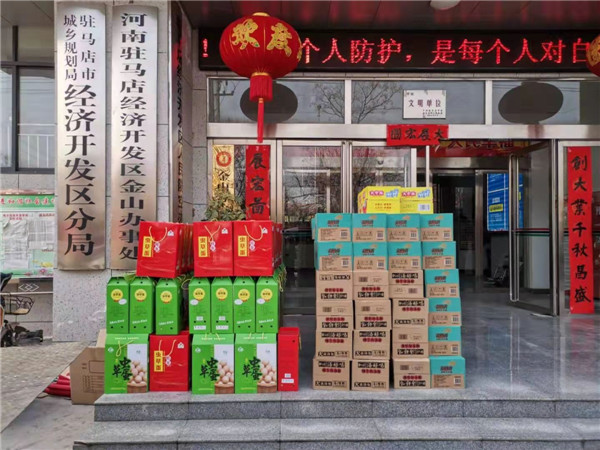 駐馬店廣電融媒體消息:災(zāi)難面前顯擔(dān)當(dāng),眾志成城筑防線。2月4日上午,駐馬店市中耀安全玻璃有限公司、駐馬店清冰食品有限公司相關(guān)負責(zé)人先后聯(lián)系到開發(fā)區(qū)金山辦事處,給金山辦事處抗疫一線基層人員分別送去了慰問物資。其中,中耀安全玻璃有限公司捐送了價值11000元的物資,分別是100箱方便面和100箱雞蛋;清冰食品有限公司捐送了價值10000元的物資,分別是牛奶和火腿腸各60件。