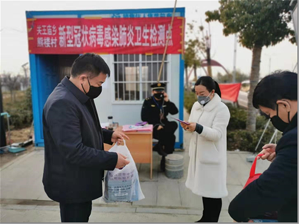 熊樓村第一時間在群眾廉租房、銀豐清水園小區(qū)和建材市場、工業(yè)園入口規(guī)范設(shè)立檢測卡點,配備專職人員24小時輪流值班,嚴防死守,嚴密排查出入車輛與人員。同時,對小區(qū)住戶挨家挨戶登記、排查是否有湖北(武漢)返鄉(xiāng)人員,并對通過大數(shù)據(jù)平臺排查出來的武漢返鄉(xiāng)人員一次次核實。