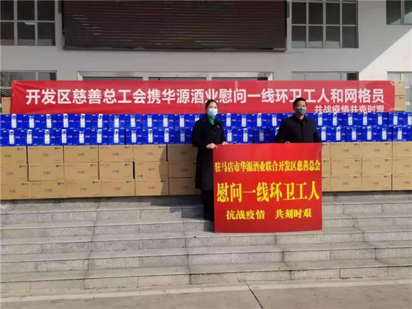 2月12日上午,開發(fā)區(qū)慈善總會聯(lián)合駐馬店華源酒業(yè)有限公司向開發(fā)區(qū)城市管理局環(huán)衛(wèi)工人及網(wǎng)格員捐獻(xiàn)了880提價值五萬余元的蒙牛純甄牛奶防疫物資,助力抗擊新型冠狀病毒感染的肺炎疫情。