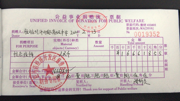 截至2月13日上午,該校7000多名師生員工已累計(jì)捐款166618.55元,該筆款項(xiàng)已全額捐至駐馬店經(jīng)濟(jì)開發(fā)區(qū)慈善總會(huì)。