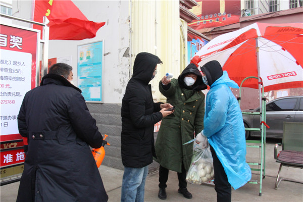 關注民生,方便生活。為了方便小區(qū)居民的生活,開源幸福苑小區(qū)臨時黨支部與附近超市進行協(xié)調,對居民所需蔬菜、水果等日常用品送貨上門。小區(qū)業(yè)主到小區(qū)大門口與送貨人員進行交接,同時對交接雙方進行現(xiàn)場測量體溫、消毒,并對業(yè)主、送貨人員個人信息進行現(xiàn)場登記備查。