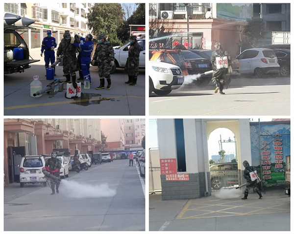 據(jù)了解,這支由40名黨員組成的“民兵消疫先鋒隊”,從大年初一至今,每天都會和戰(zhàn)友們攜帶手推泵、電動背負式噴壺和背負式細水霧裝置等工具,奔赴各居民小區(qū)滅毒消殺。