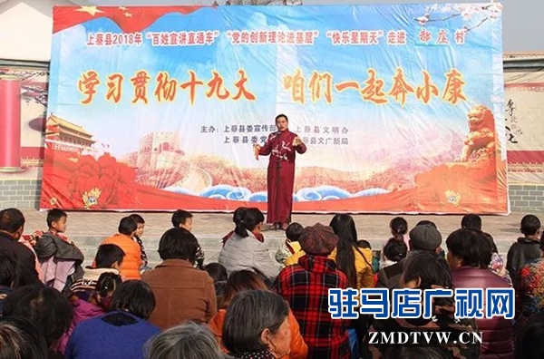 【駐馬店廣視融媒訊】(通訊員 彭帥) 連日來(lái),在上蔡縣蔡都街道辦事處、無(wú)量寺鄉(xiāng)一片歡歌笑語(yǔ),由上蔡縣委宣傳部、上蔡縣文明辦等部門(mén)聯(lián)合主辦的上蔡縣2018年“百姓宣講直通車(chē)”“黨的創(chuàng)新理論進(jìn)基層”“快樂(lè)星期天”巡演活動(dòng)正在這里舉行,人們不光從這一活動(dòng)中享受到文藝節(jié)目帶來(lái)的藝術(shù)享受,更從中了解了黨和政府科學(xué)理論和扶貧攻堅(jiān)的政策。
