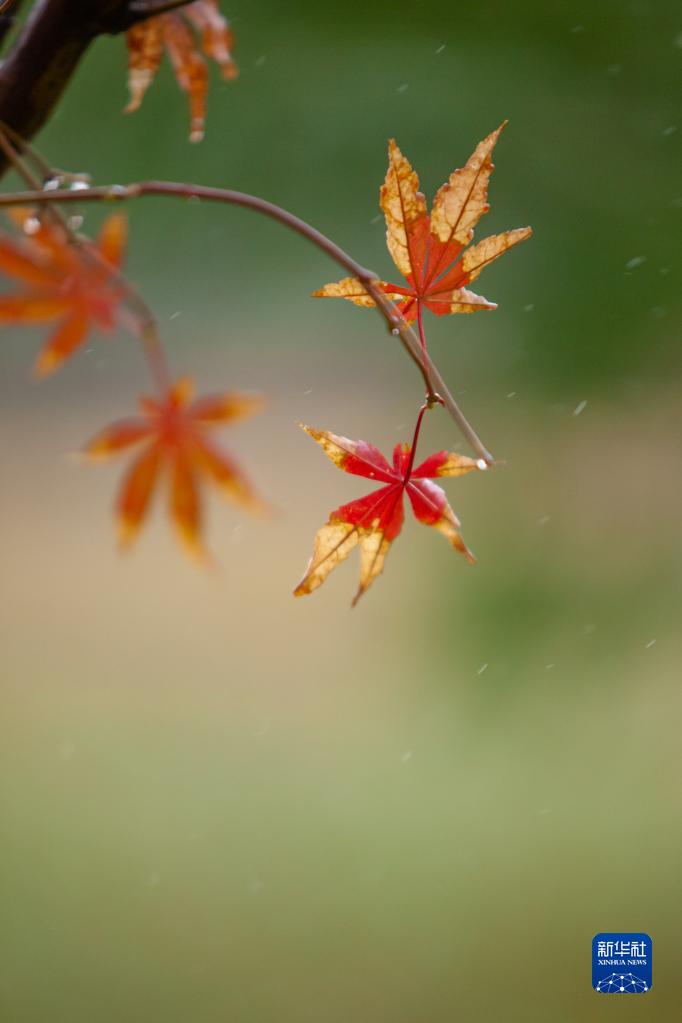 在江蘇省揚(yáng)州市瘦西湖風(fēng)景區(qū),楓葉飄落(10月1日攝)。