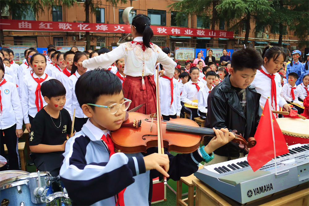 “一曲紅歌憶烽火,千秋偉業(yè)敬山河。”一首首紅歌,既是波瀾壯闊歷史的生動見證,更是紅色精神的代代傳承。此次賽歌會中,《歌唱祖國》《中國中國,鮮紅的太陽永不落》《游擊隊之歌》《志愿軍戰(zhàn)歌》《走向復興》《紅領巾心向黨》《我們走在大路上》《團結就是力量》《少年中國夢》《沒有共產(chǎn)黨就沒有新中國》等經(jīng)典曲目相繼登臺。同學們用稚嫩卻堅定的嗓音,唱出對祖國的贊美,也讓紅色記憶在歌聲中深深扎根。