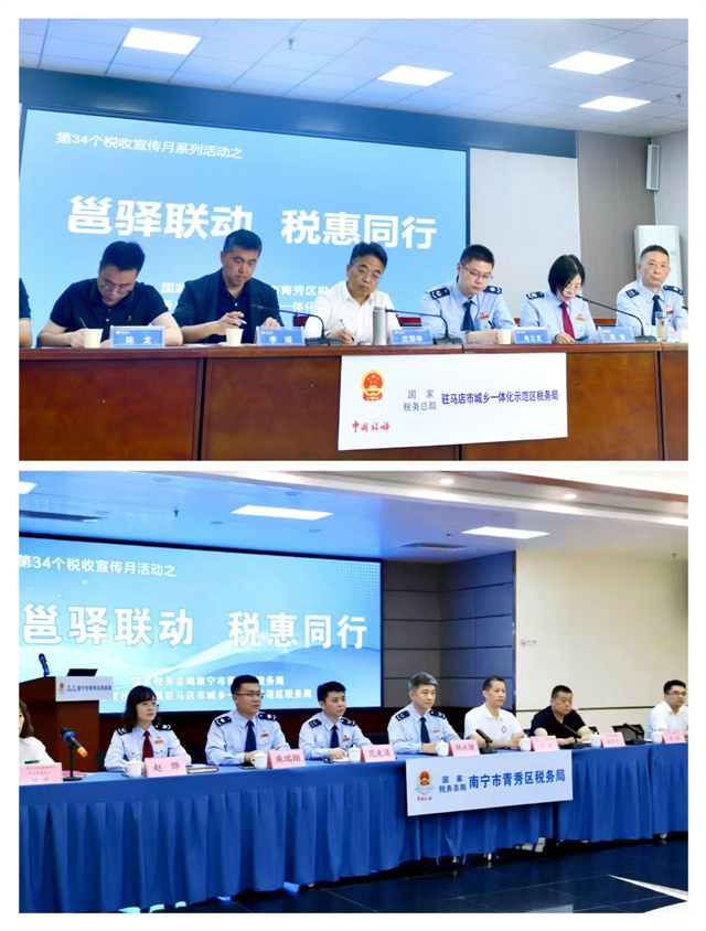 今年四月是第34個(gè)全國(guó)稅收宣傳月,4月23日,駐馬店市城鄉(xiāng)一體化示范區(qū)稅務(wù)局聯(lián)合南寧市青秀區(qū)稅務(wù)局,創(chuàng)新采用“云端會(huì)客廳+線下實(shí)景交互”模式,開(kāi)啟了一場(chǎng)跨越1500公里的跨區(qū)域稅收宣傳活動(dòng)。通過(guò)云端連線、政策互通、政企對(duì)話等形式,兩地稅務(wù)部門聚焦企業(yè)跨區(qū)域經(jīng)營(yíng)痛點(diǎn),以務(wù)實(shí)舉措搭建服務(wù)橋梁,為區(qū)域經(jīng)濟(jì)高質(zhì)量發(fā)展貢獻(xiàn)基層稅務(wù)智慧。