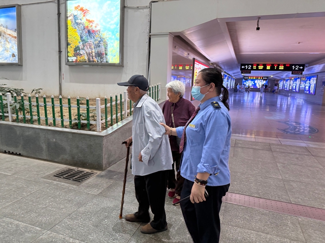 傾情暖心服務,全過程紓困。充分發(fā)揮“驛路溫馨”服務站作用,安排專人解答旅客問詢、提供輪椅、便民物品和信息查詢服務,同時通過對候車區(qū)洗手池配備熱水寶,安裝免費充電處等保證便捷出行。適時組建黨團突擊隊,分布在售票廳、進站口、電梯口、站臺等關鍵崗位,為殘障旅客提供進站迎接、候車照顧、進站護送、上車交接的一條龍服務,做好殘障旅客旅途的“貼心人”。