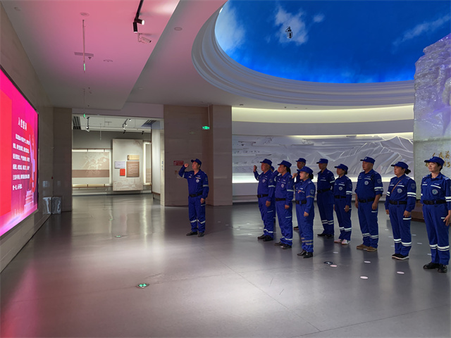 在紀念館內(nèi),黨員代表張永軍帶領全體黨員舉起右拳,莊嚴重溫入黨誓詞。鏗鏘有力的誓言回蕩在展廳中,不僅是對革命先烈的深切告慰,更堅定了隊員們踐行初心使命、弘揚志愿精神的信念。