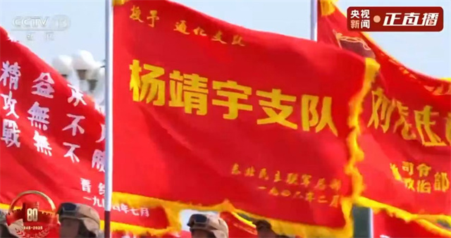 2025年9月3日,在紀念中國人民抗日戰(zhàn)爭暨世界反法西斯戰(zhàn)爭勝利80周年大會閱兵儀式中,“楊靖宇支隊”的戰(zhàn)旗迎風飄揚,接受黨和人民的檢閱。近20秒的特寫畫面,令無數(shù)中華兒女心潮澎湃。在楊靖宇將軍的家鄉(xiāng)駐馬店,人們紛紛鼓掌歡呼,表達對英雄的崇敬與對家鄉(xiāng)的熱愛。