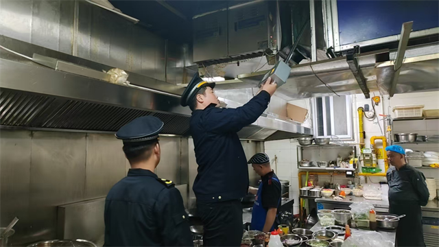 示范區(qū)城管局執(zhí)法人員對(duì)轄區(qū)內(nèi)餐飲商戶不間斷開展油煙排查。重點(diǎn)查看油煙設(shè)施是否完善;集氣罩、排風(fēng)管道和排風(fēng)機(jī)等設(shè)備是否與經(jīng)營(yíng)規(guī)模相匹配;油煙凈化設(shè)施是否正常使用;是否建立完善的管理、清洗、維修臺(tái)賬。