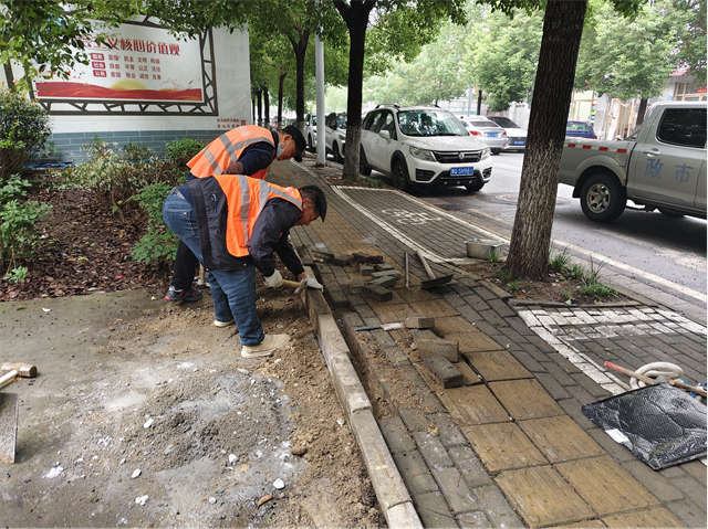 為保障市政設(shè)施安全運(yùn)行,開(kāi)發(fā)區(qū)城市管理事務(wù)中心組織市政工作人員聚焦轄區(qū)重點(diǎn)區(qū)域,對(duì)轄區(qū)低洼、易積水區(qū)域開(kāi)展“拉網(wǎng)式”排查,對(duì)排查出的問(wèn)題逐一拍照記錄并建立臺(tái)賬。施工期間,市政工作人員利用橡皮錘、切割機(jī)、鐵鍬等工具,搶抓晴好天氣,采用錯(cuò)時(shí)錯(cuò)峰作業(yè)模式,及時(shí)修復(fù)面磚缺失、道牙石破損等問(wèn)題,通過(guò)扎實(shí)有效的工作,營(yíng)造整潔優(yōu)美、秩序規(guī)范的城市環(huán)境,切實(shí)保障市政設(shè)施正常運(yùn)轉(zhuǎn)。